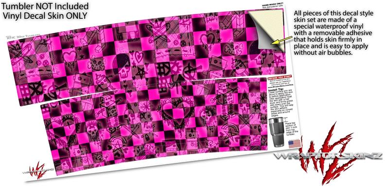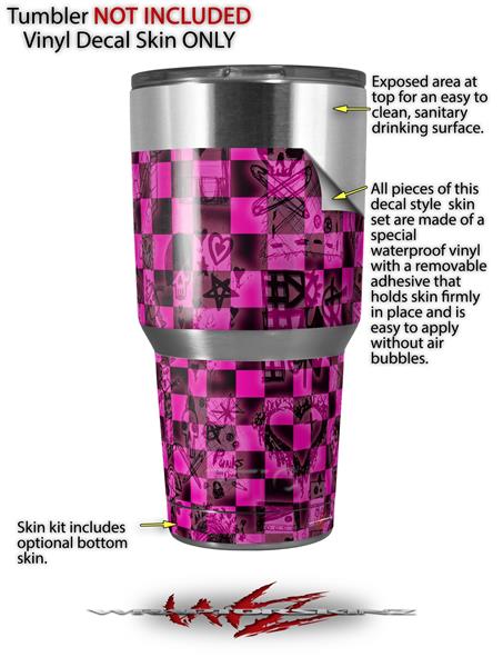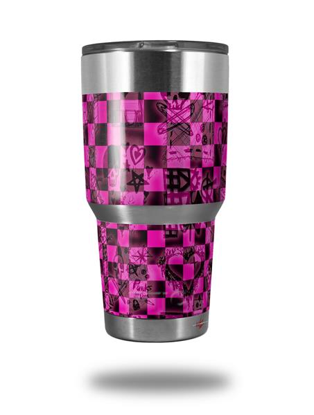 WraptorSkinz Skin Wrap compatible with RTIC 30oz ORIGINAL 2017 AND OLDER Tumblers Pink Checkerboard Sketches (TUMBLER NOT INCLUDED)