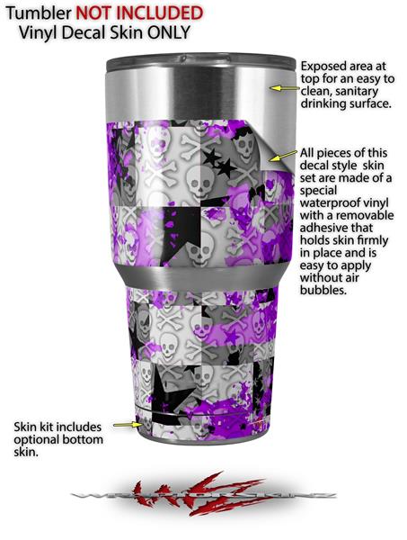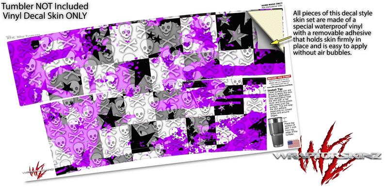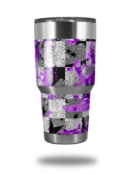WraptorSkinz Skin Wrap compatible with RTIC 30oz ORIGINAL 2017 AND OLDER Tumblers Purple Checker Skull Splatter (TUMBLER NOT INCLUDED)