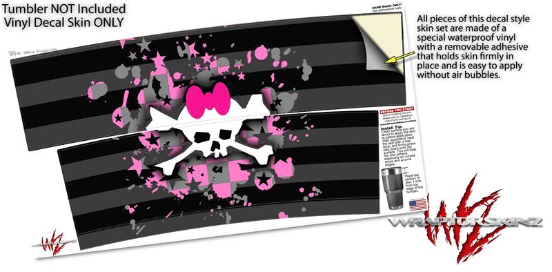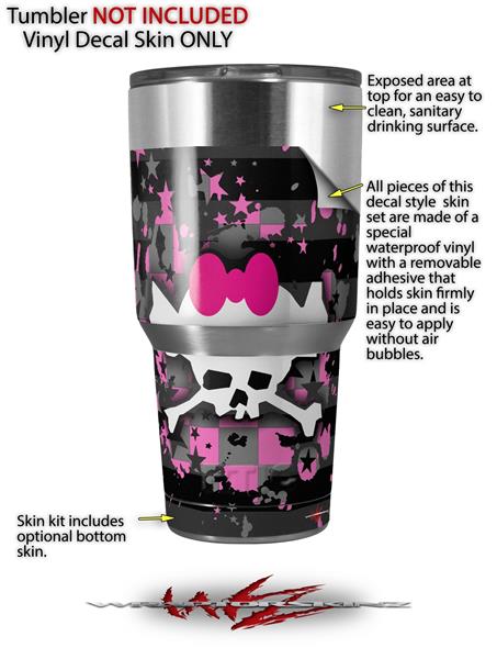 WraptorSkinz Skin Wrap compatible with RTIC 30oz ORIGINAL 2017 AND OLDER Tumblers Pink Bow Skull (TUMBLER NOT INCLUDED)