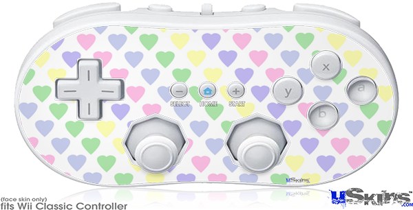 Wii Classic Controller Skin - Pastel Hearts on White