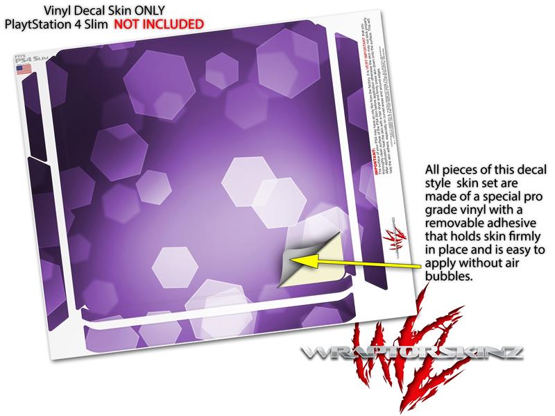 Vinyl Decal Skin Wrap compatible with Sony PlayStation 4 Slim Console Bokeh Hex Purple (PS4 NOT INCLUDED)