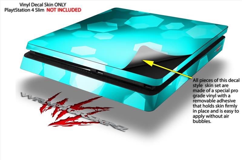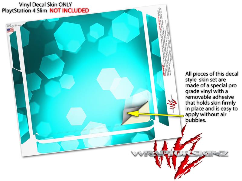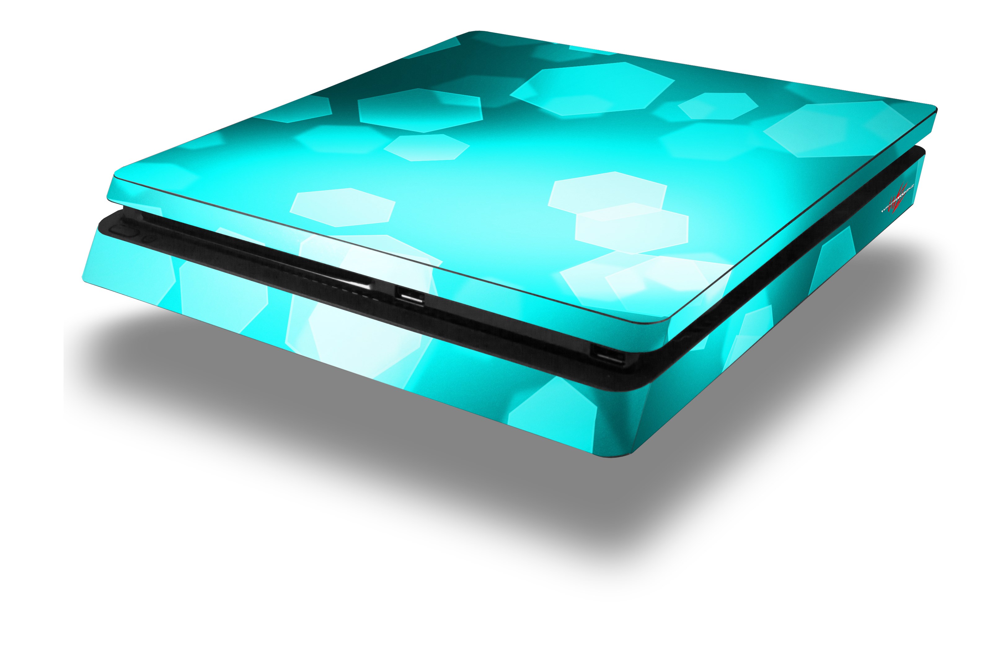 Vinyl Decal Skin Wrap compatible with Sony PlayStation 4 Slim Console Bokeh Hex Neon Teal (PS4 NOT INCLUDED)