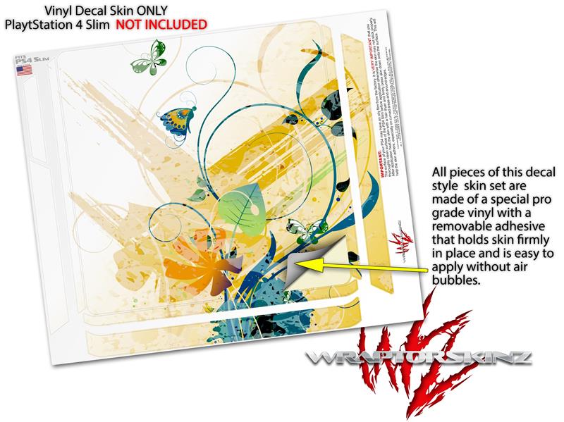 Vinyl Decal Skin Wrap compatible with Sony PlayStation 4 Slim Console Water Butterflies (PS4 NOT INCLUDED)