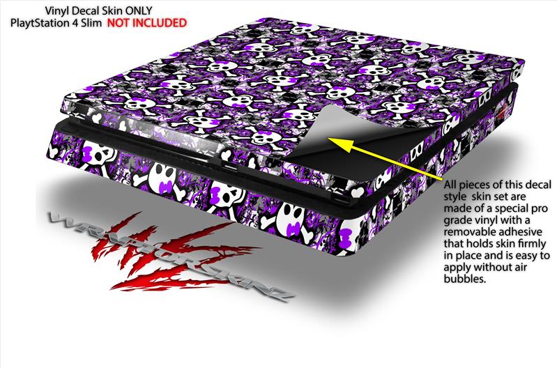 Vinyl Decal Skin Wrap compatible with Sony PlayStation 4 Slim Console Splatter Girly Skull Purple (PS4 NOT INCLUDED)