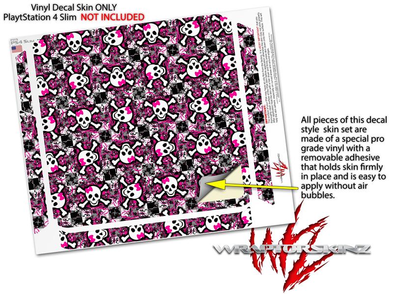 Vinyl Decal Skin Wrap compatible with Sony PlayStation 4 Slim Console Splatter Girly Skull Pink (PS4 NOT INCLUDED)