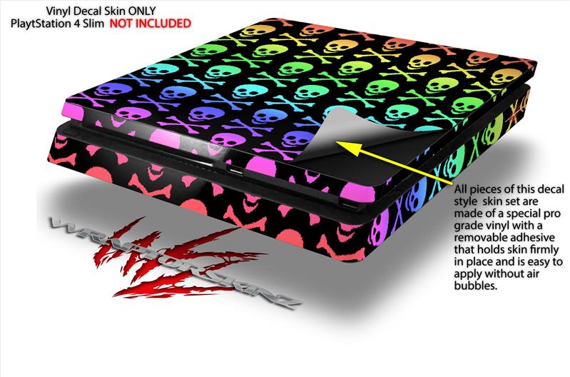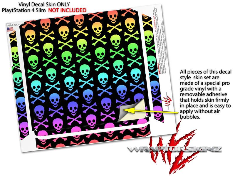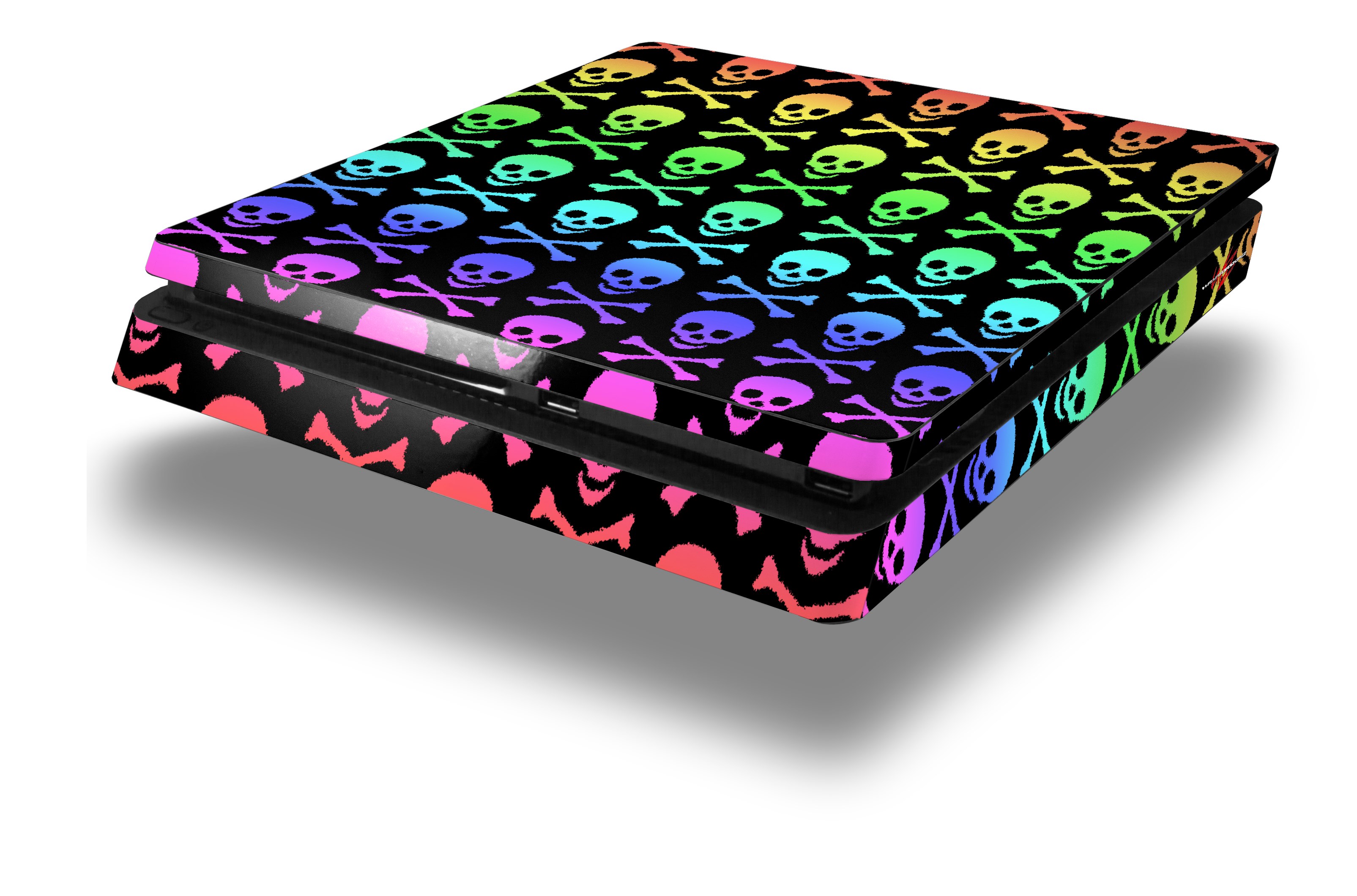 Vinyl Decal Skin Wrap compatible with Sony PlayStation 4 Slim Console Skull and Crossbones Rainbow (PS4 NOT INCLUDED)