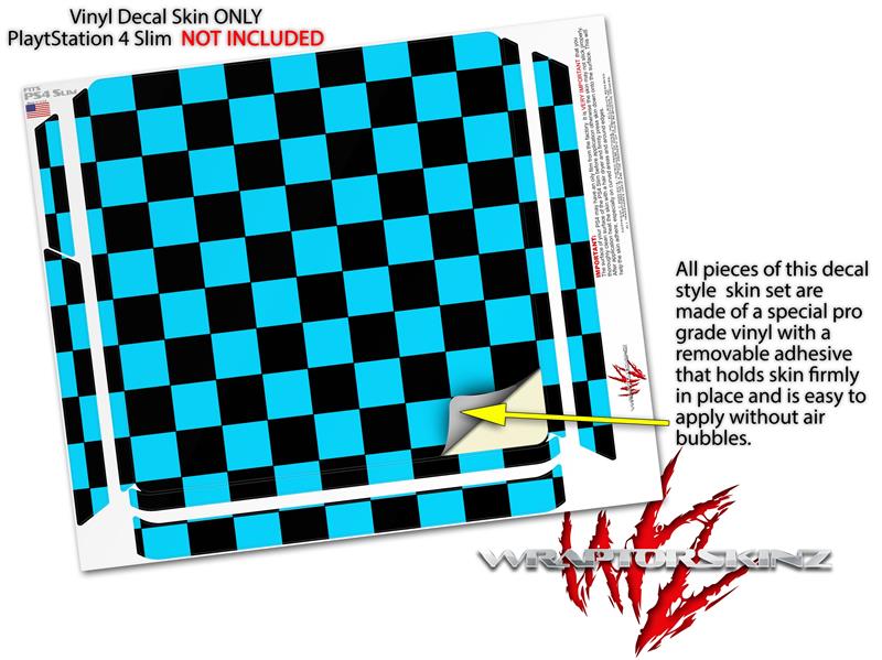 Vinyl Decal Skin Wrap compatible with Sony PlayStation 4 Slim Console Checkers Blue (PS4 NOT INCLUDED)
