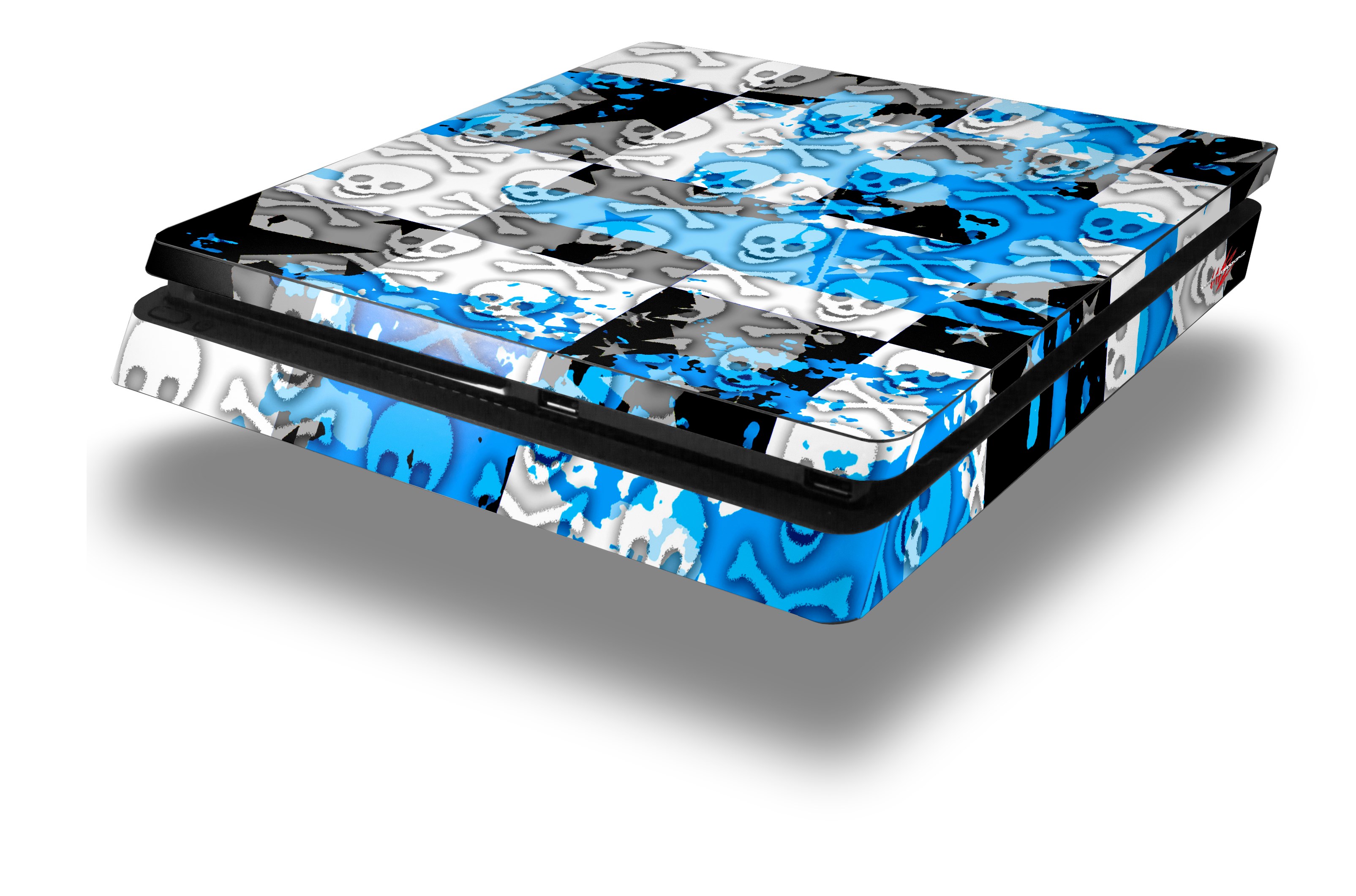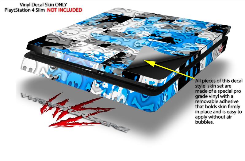 Vinyl Decal Skin Wrap compatible with Sony PlayStation 4 Slim Console Checker Skull Splatter Blue (PS4 NOT INCLUDED)