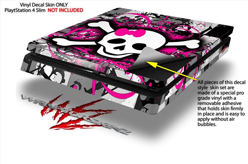 Vinyl Decal Skin Wrap compatible with Sony PlayStation 4 Slim Console Splatter Girly Skull (PS4 NOT INCLUDED)