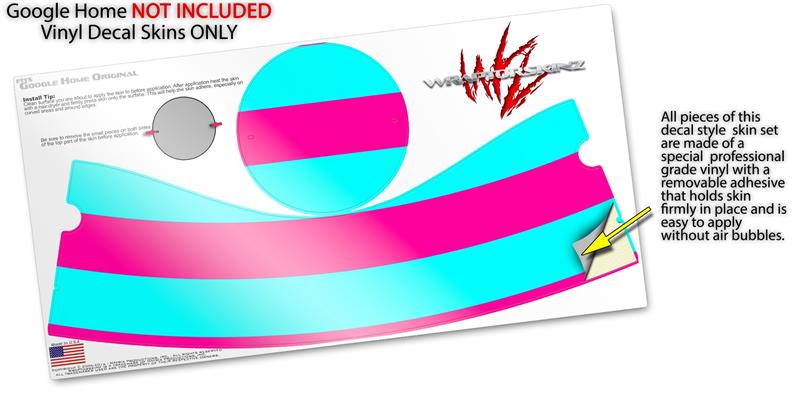 Decal Style Skin Wrap for Google Home Original - Psycho Stripes Neon Teal and Hot Pink (GOOGLE HOME NOT INCLUDED)