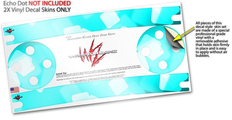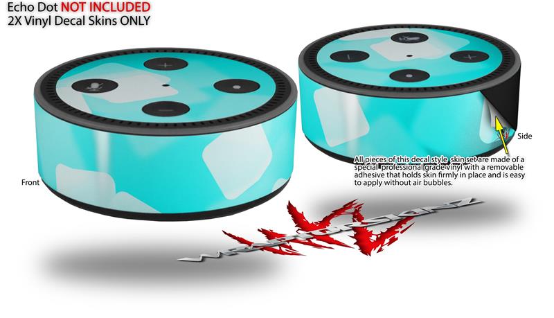 Skin Wrap Decal Set 2 Pack for Amazon Echo Dot 2 - Bokeh Squared Neon Teal (2nd Generation ONLY - Echo NOT INCLUDED)