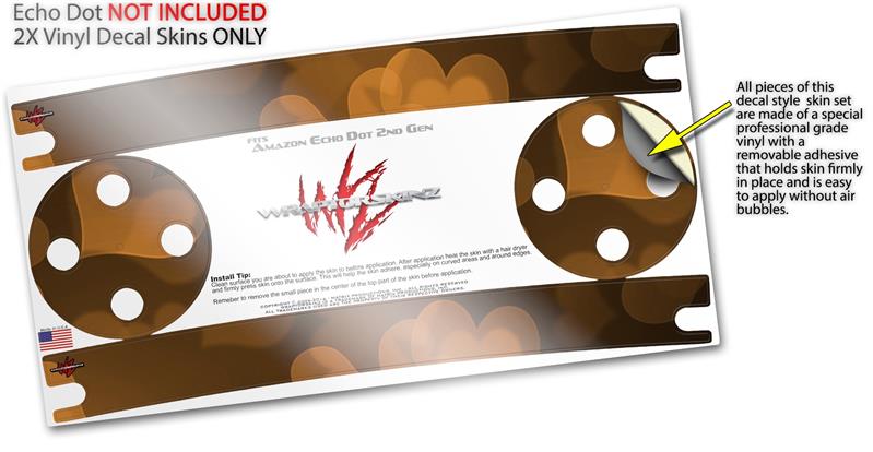 Skin Wrap Decal Set 2 Pack for Amazon Echo Dot 2 - Bokeh Hearts Orange (2nd Generation ONLY - Echo NOT INCLUDED)