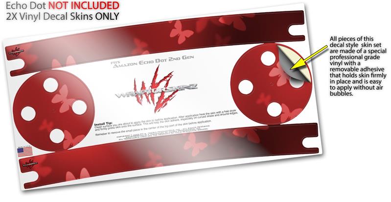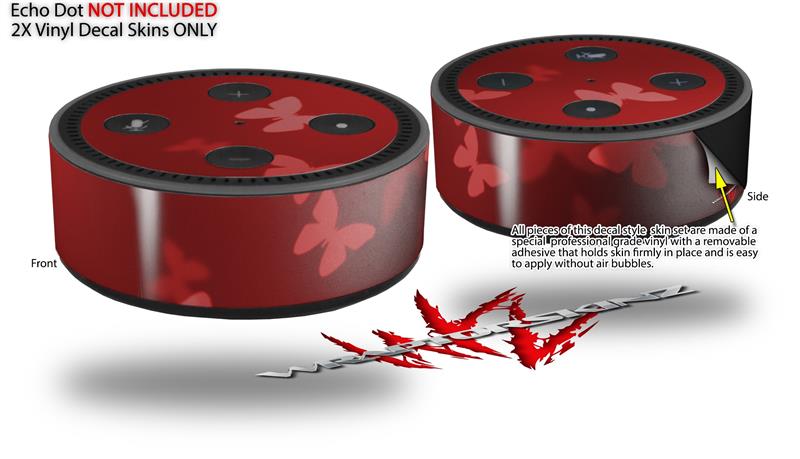 Skin Wrap Decal Set 2 Pack for Amazon Echo Dot 2 - Bokeh Butterflies Red (2nd Generation ONLY - Echo NOT INCLUDED)