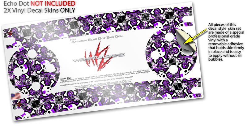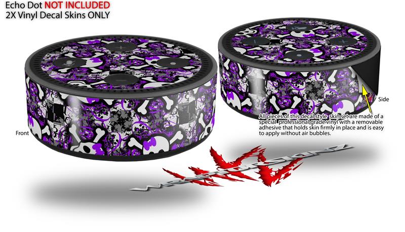 Skin Wrap Decal Set 2 Pack for Amazon Echo Dot 2 - Splatter Girly Skull Purple (2nd Generation ONLY - Echo NOT INCLUDED)