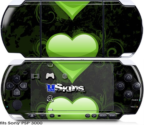 Sony PSP 3000 Skin - Glass Heart Grunge Green