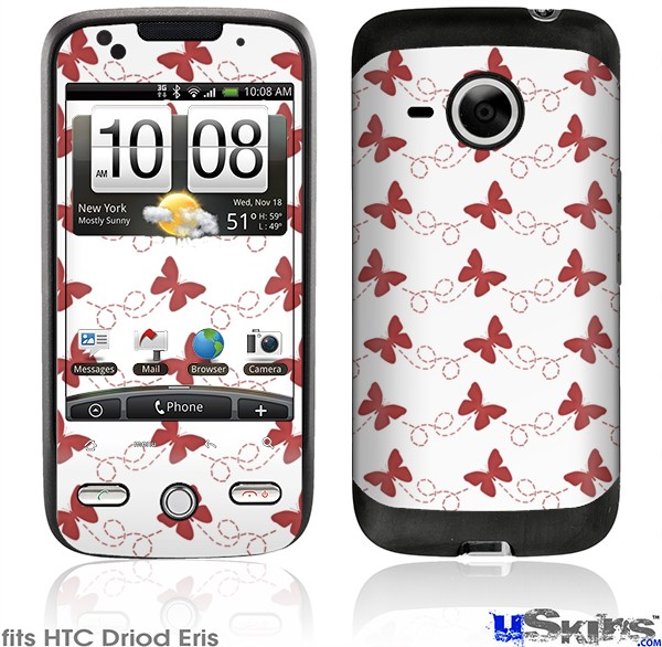 HTC Droid Eris Skin - Pastel Butterflies Red on White