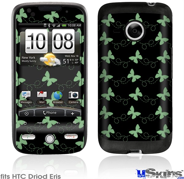 HTC Droid Eris Skin - Pastel Butterflies Green on Black