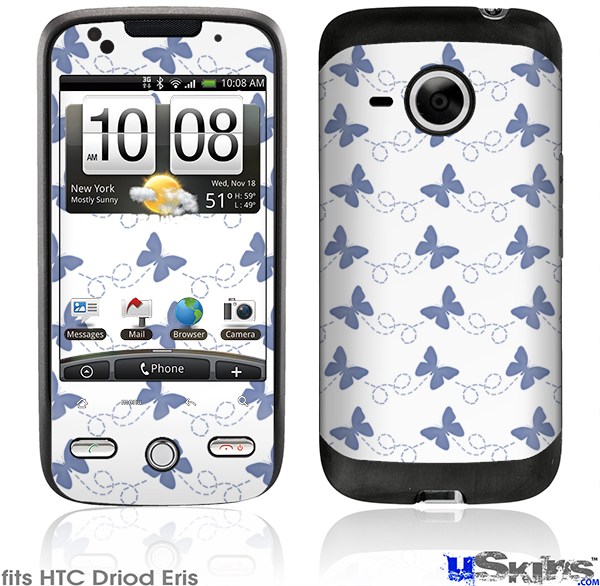 HTC Droid Eris Skin - Pastel Butterflies Blue on White