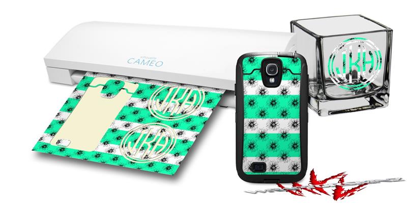 WraptorSkinz Vinyl Craft Cutter Designer 12x12 Sheets Kearas Daisies Stripe Sea Foam - 2 Pack