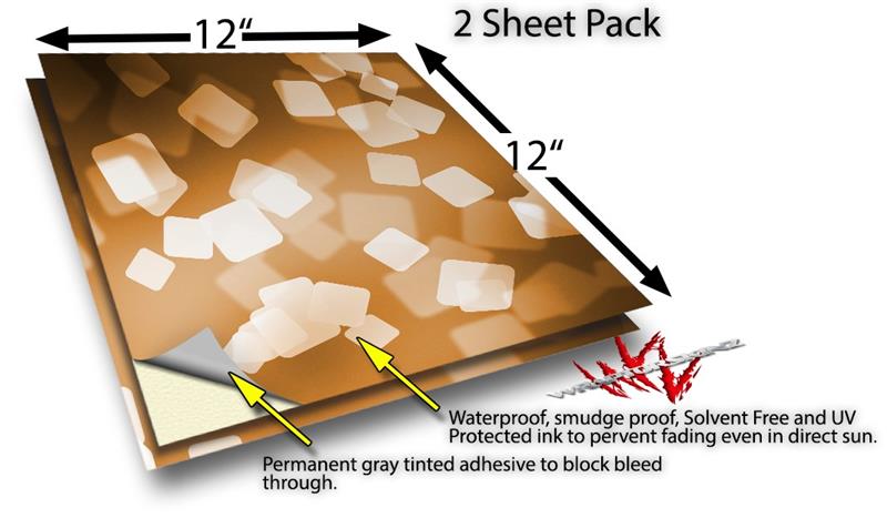 WraptoSkinz™ skin vinyl craft sheets are printed using superb photo quality designs and vibrant colors printed with special UV Protected fade resistant inks that last even in direct sun for years. Unlike other brands our inks are NOT solvent based. WraptorSkinz are a manufactured from professional grade 3mill vinyl. These sheets are waterproof, the designs will not run or smear even if submerged in water.