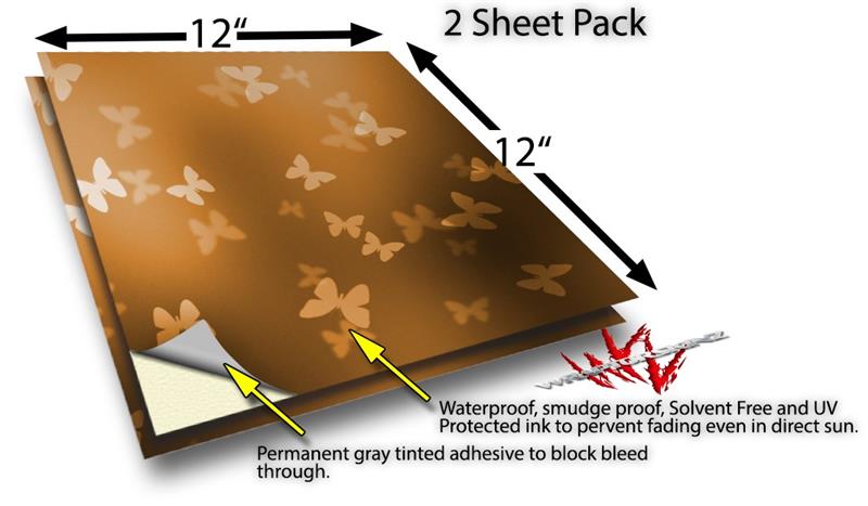WraptoSkinz™ skin vinyl craft sheets are printed using superb photo quality designs and vibrant colors printed with special UV Protected fade resistant inks that last even in direct sun for years. Unlike other brands our inks are NOT solvent based. WraptorSkinz are a manufactured from professional grade 3mill vinyl. These sheets are waterproof, the designs will not run or smear even if submerged in water.