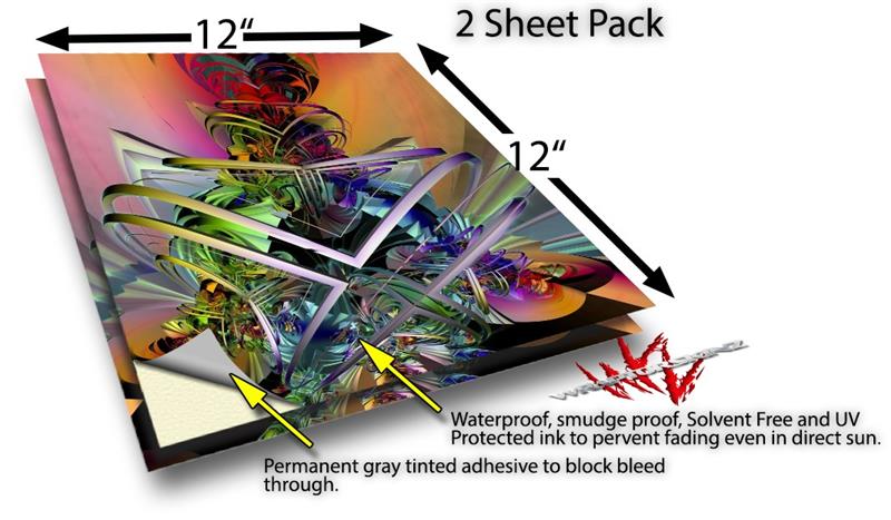 WraptoSkinz™ skin vinyl craft sheets are printed using superb photo quality designs and vibrant colors printed with special UV Protected fade resistant inks that last even in direct sun for years. Unlike other brands our inks are NOT solvent based. WraptorSkinz are a manufactured from professional grade 3mill vinyl. These sheets are waterproof, the designs will not run or smear even if submerged in water.