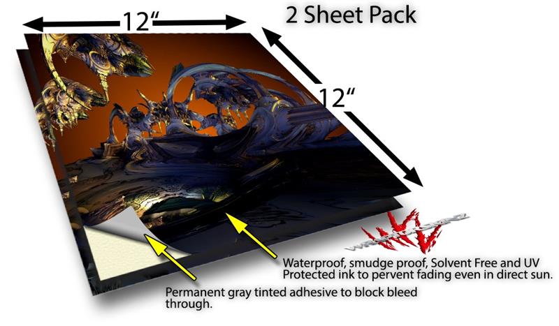 WraptoSkinz™ skin vinyl craft sheets are printed using superb photo quality designs and vibrant colors printed with special UV Protected fade resistant inks that last even in direct sun for years. Unlike other brands our inks are NOT solvent based. WraptorSkinz are a manufactured from professional grade 3mill vinyl. These sheets are waterproof, the designs will not run or smear even if submerged in water.
