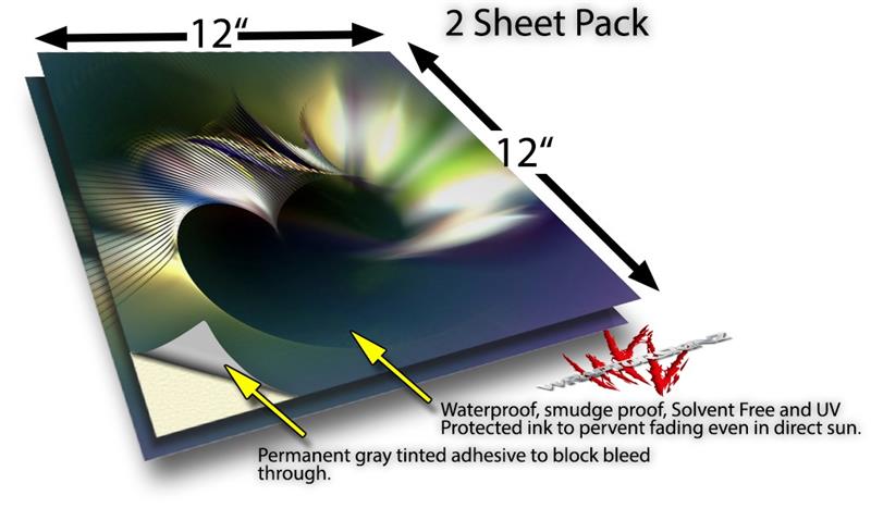 WraptoSkinz™ skin vinyl craft sheets are printed using superb photo quality designs and vibrant colors printed with special UV Protected fade resistant inks that last even in direct sun for years. Unlike other brands our inks are NOT solvent based. WraptorSkinz are a manufactured from professional grade 3mill vinyl. These sheets are waterproof, the designs will not run or smear even if submerged in water.
