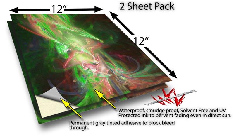WraptoSkinz™ skin vinyl craft sheets are printed using superb photo quality designs and vibrant colors printed with special UV Protected fade resistant inks that last even in direct sun for years. Unlike other brands our inks are NOT solvent based. WraptorSkinz are a manufactured from professional grade 3mill vinyl. These sheets are waterproof, the designs will not run or smear even if submerged in water.