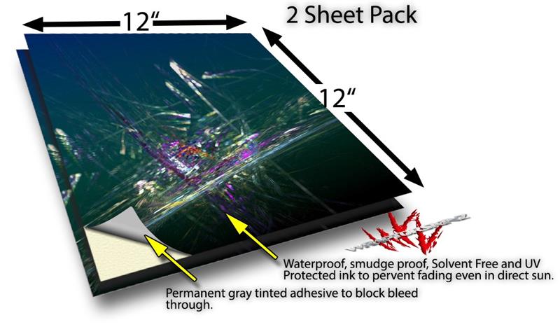 WraptoSkinz™ skin vinyl craft sheets are printed using superb photo quality designs and vibrant colors printed with special UV Protected fade resistant inks that last even in direct sun for years. Unlike other brands our inks are NOT solvent based. WraptorSkinz are a manufactured from professional grade 3mill vinyl. These sheets are waterproof, the designs will not run or smear even if submerged in water.