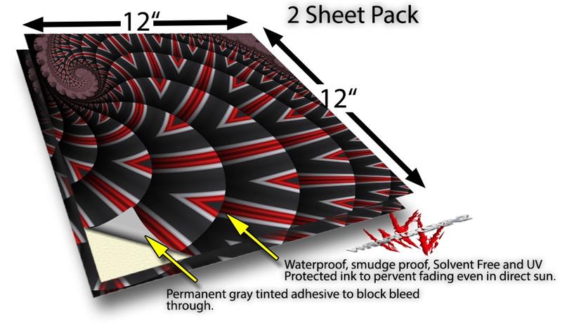 WraptoSkinz™ skin vinyl craft sheets are printed using superb photo quality designs and vibrant colors printed with special UV Protected fade resistant inks that last even in direct sun for years. Unlike other brands our inks are NOT solvent based. WraptorSkinz are a manufactured from professional grade 3mill vinyl. These sheets are waterproof, the designs will not run or smear even if submerged in water.