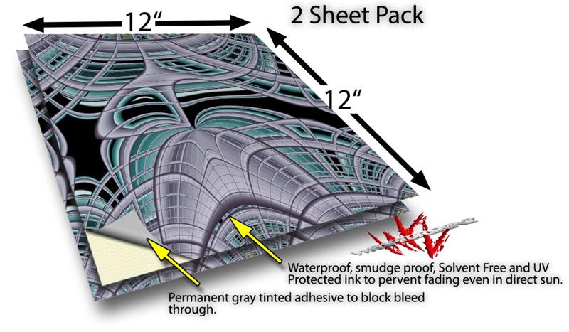 WraptoSkinz™ skin vinyl craft sheets are printed using superb photo quality designs and vibrant colors printed with special UV Protected fade resistant inks that last even in direct sun for years. Unlike other brands our inks are NOT solvent based. WraptorSkinz are a manufactured from professional grade 3mill vinyl. These sheets are waterproof, the designs will not run or smear even if submerged in water.
