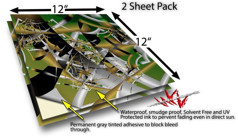 WraptoSkinz™ skin vinyl craft sheets are printed using superb photo quality designs and vibrant colors printed with special UV Protected fade resistant inks that last even in direct sun for years. Unlike other brands our inks are NOT solvent based. WraptorSkinz are a manufactured from professional grade 3mill vinyl. These sheets are waterproof, the designs will not run or smear even if submerged in water.