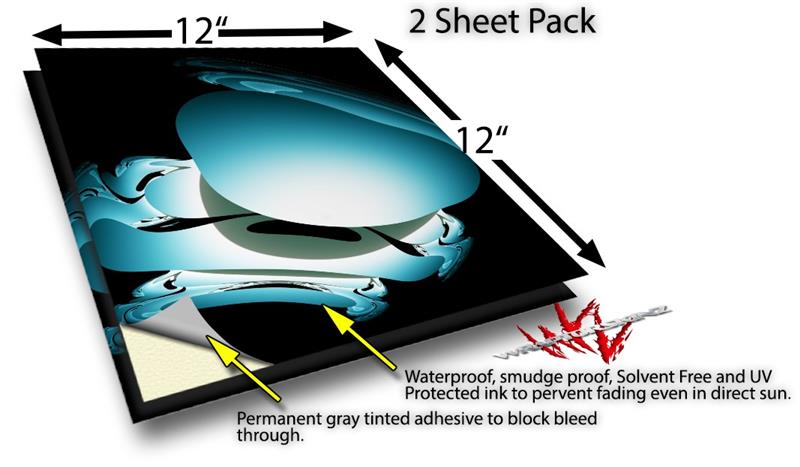 WraptoSkinz™ skin vinyl craft sheets are printed using superb photo quality designs and vibrant colors printed with special UV Protected fade resistant inks that last even in direct sun for years. Unlike other brands our inks are NOT solvent based. WraptorSkinz are a manufactured from professional grade 3mill vinyl. These sheets are waterproof, the designs will not run or smear even if submerged in water.