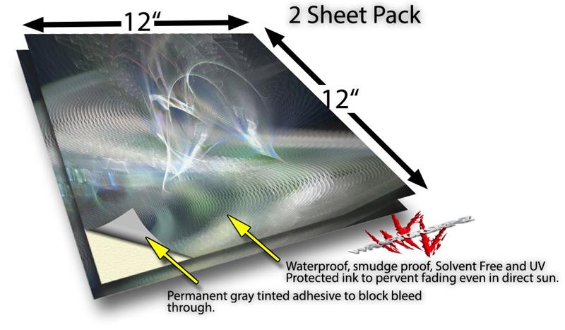 WraptoSkinz™ skin vinyl craft sheets are printed using superb photo quality designs and vibrant colors printed with special UV Protected fade resistant inks that last even in direct sun for years. Unlike other brands our inks are NOT solvent based. WraptorSkinz are a manufactured from professional grade 3mill vinyl. These sheets are waterproof, the designs will not run or smear even if submerged in water.