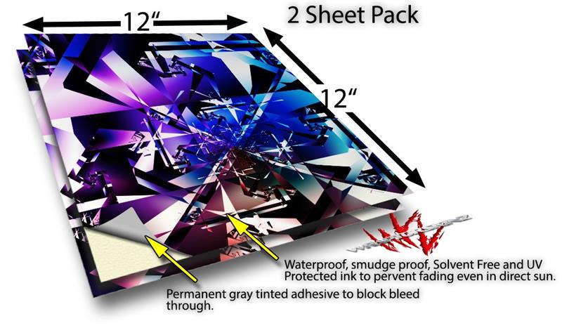 WraptoSkinz™ skin vinyl craft sheets are printed using superb photo quality designs and vibrant colors printed with special UV Protected fade resistant inks that last even in direct sun for years. Unlike other brands our inks are NOT solvent based. WraptorSkinz are a manufactured from professional grade 3mill vinyl. These sheets are waterproof, the designs will not run or smear even if submerged in water.