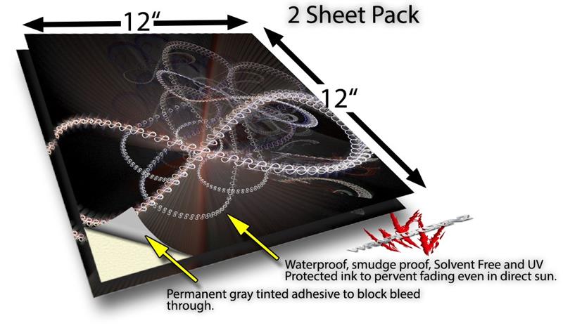 WraptoSkinz™ skin vinyl craft sheets are printed using superb photo quality designs and vibrant colors printed with special UV Protected fade resistant inks that last even in direct sun for years. Unlike other brands our inks are NOT solvent based. WraptorSkinz are a manufactured from professional grade 3mill vinyl. These sheets are waterproof, the designs will not run or smear even if submerged in water.