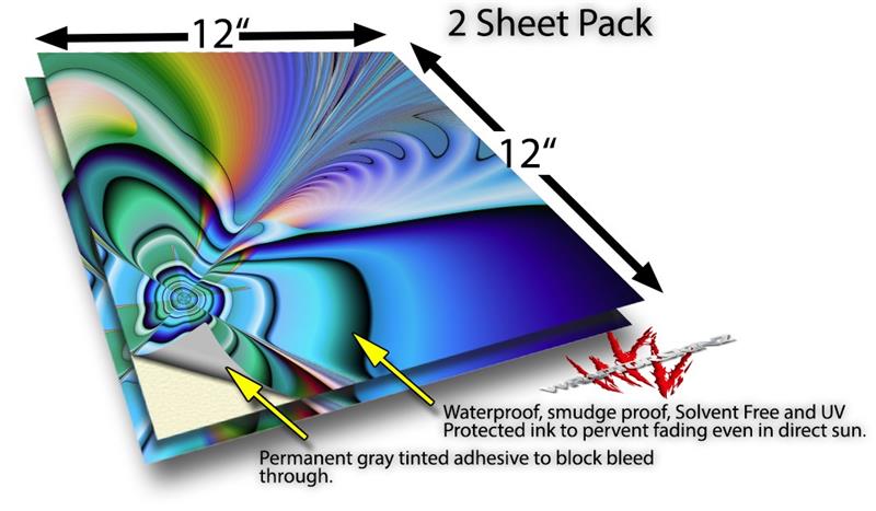 WraptoSkinz™ skin vinyl craft sheets are printed using superb photo quality designs and vibrant colors printed with special UV Protected fade resistant inks that last even in direct sun for years. Unlike other brands our inks are NOT solvent based. WraptorSkinz are a manufactured from professional grade 3mill vinyl. These sheets are waterproof, the designs will not run or smear even if submerged in water.