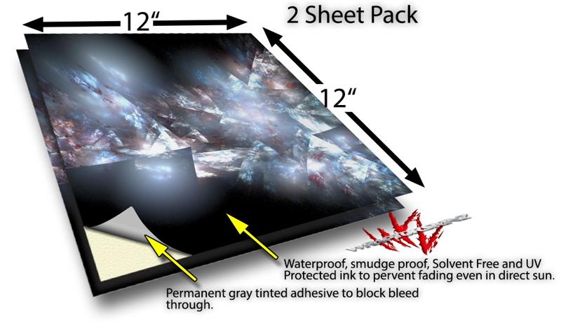WraptoSkinz™ skin vinyl craft sheets are printed using superb photo quality designs and vibrant colors printed with special UV Protected fade resistant inks that last even in direct sun for years. Unlike other brands our inks are NOT solvent based. WraptorSkinz are a manufactured from professional grade 3mill vinyl. These sheets are waterproof, the designs will not run or smear even if submerged in water.
