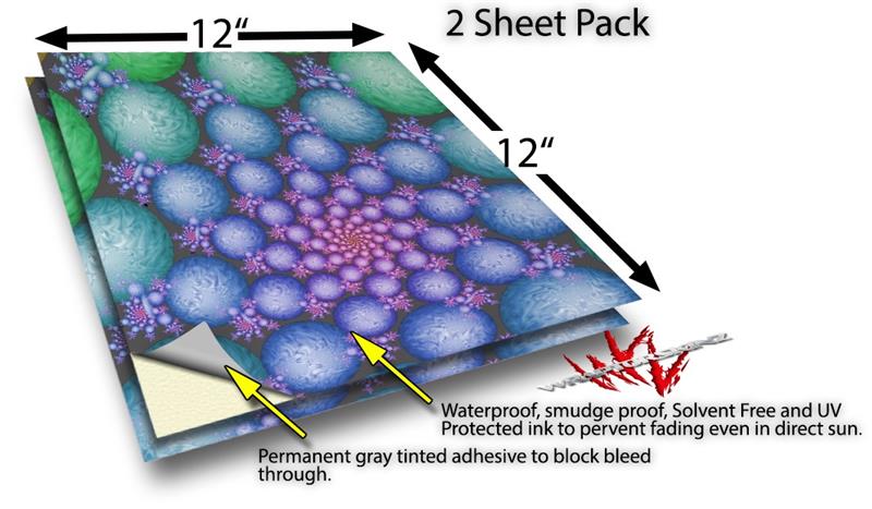 WraptoSkinz™ skin vinyl craft sheets are printed using superb photo quality designs and vibrant colors printed with special UV Protected fade resistant inks that last even in direct sun for years. Unlike other brands our inks are NOT solvent based. WraptorSkinz are a manufactured from professional grade 3mill vinyl. These sheets are waterproof, the designs will not run or smear even if submerged in water.