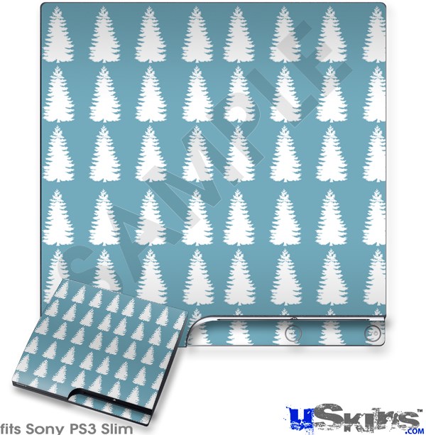 Decal Skin compatible with Sony PS3 Slim Winter Trees Blue