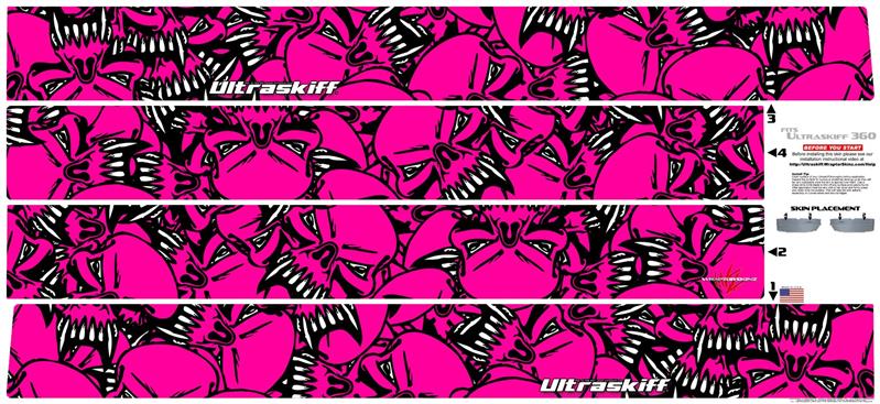 Scattered Skulls Hot Pink - Vinyl Skin Partial Wrap Graphic fits Top Half of Ultraskiff 360 (ULTRASKIFF NOT INCLUDED)