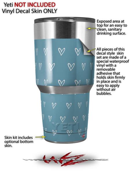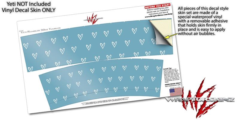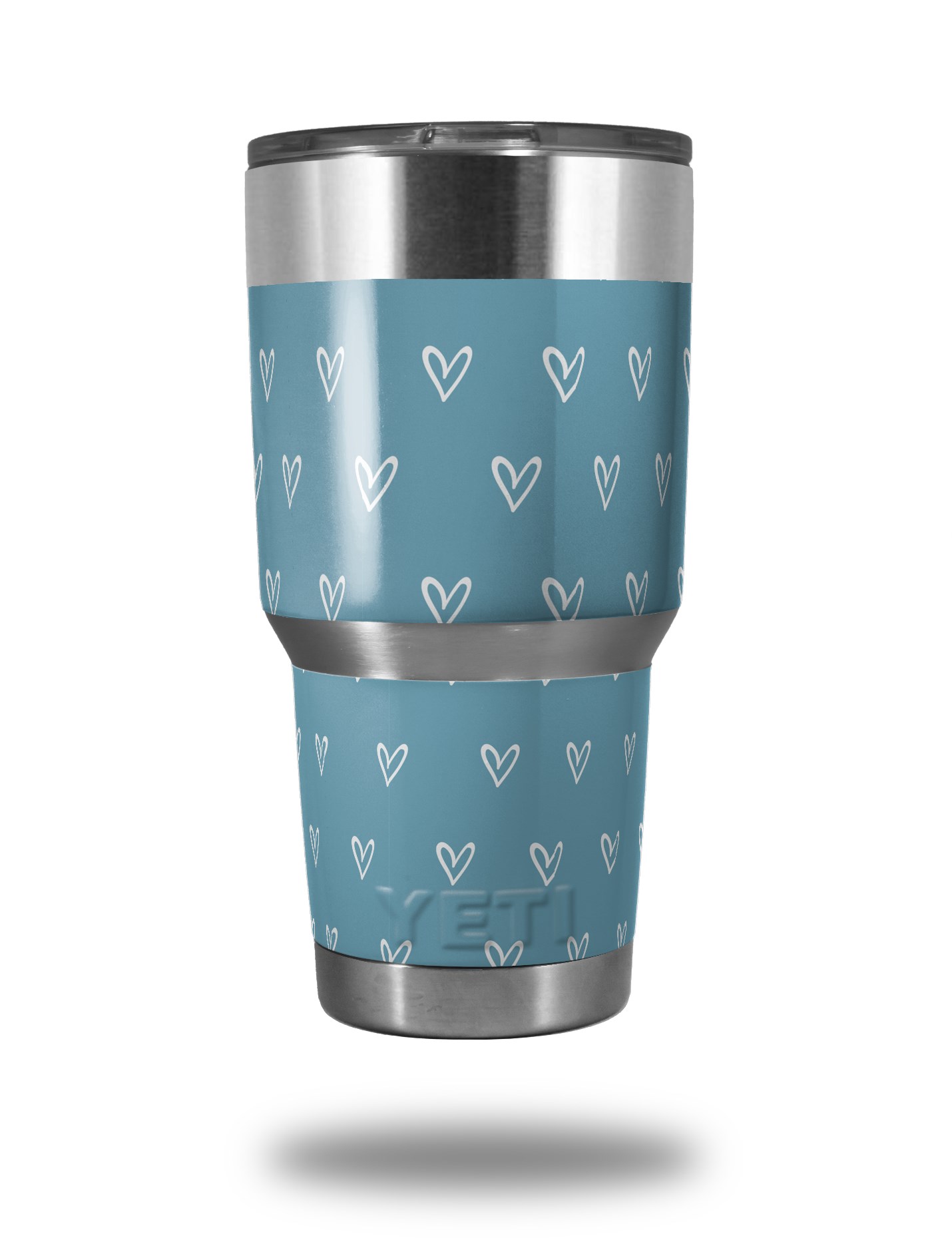 Skin Decal Wrap for Yeti Tumbler Rambler 30 oz Hearts Blue On White (TUMBLER NOT INCLUDED)