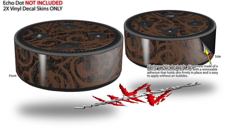 Skin Wrap Decal Set 2 Pack for Amazon Echo Dot 2 - Folder Doodles Chocolate Brown (2nd Generation ONLY - Echo NOT INCLUDED)