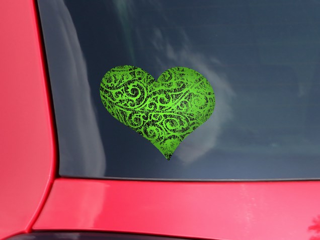 Folder Doodles Neon Green - I Heart Love Car Window Decal 6.5 x 5.5 inches