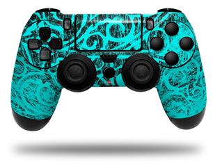 WraptorSkinz Skin compatible with Sony PS4 Dualshock Controller PlayStation 4 Original Slim and Pro Folder Doodles Neon Teal (CONTROLLER NOT INCLUDED)
