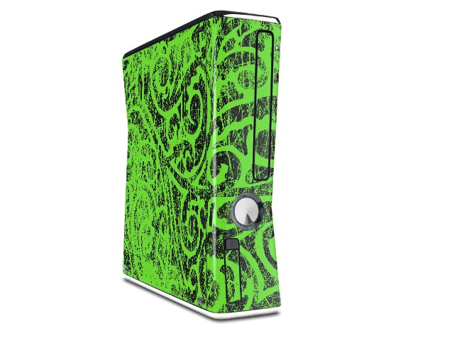 Folder Doodles Neon Green Decal Style Skin for XBOX 360 Slim Vertical