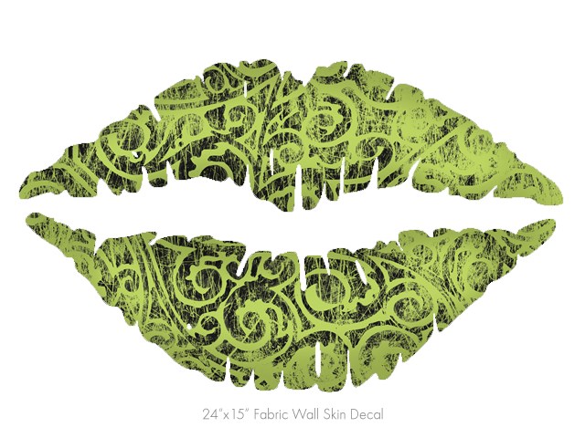 Folder Doodles Sage Green - Kissing Lips Fabric Wall Skin Decal measures 24x15 inches