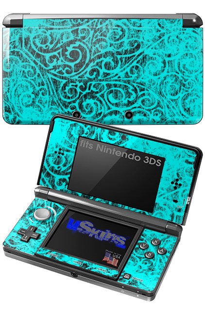Folder Doodles Neon Teal - Decal Style Skin fits Nintendo 3DS (3DS SOLD SEPARATELY)