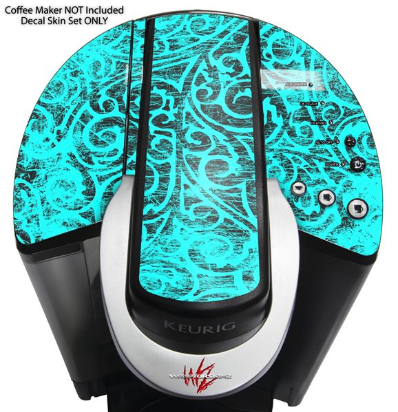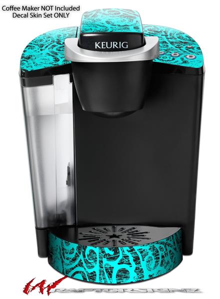 Decal Style Vinyl Skin compatible with Keurig K40 Elite Coffee Makers Folder Doodles Neon Teal (KEURIG NOT INCLUDED)